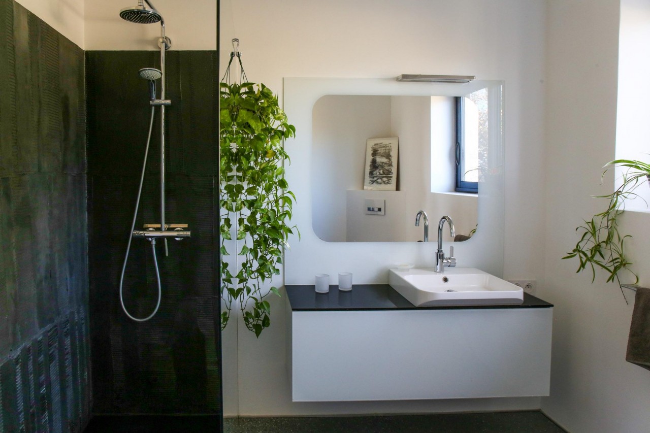 Your suite on the first floor hosts 2 persons, has about 45 m2 including a spacious bathroom and a sleeping room. The living room has access to a private terrace.